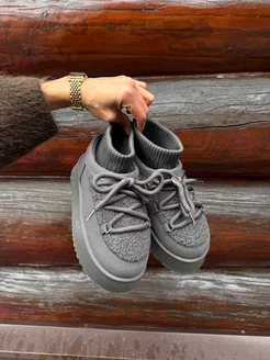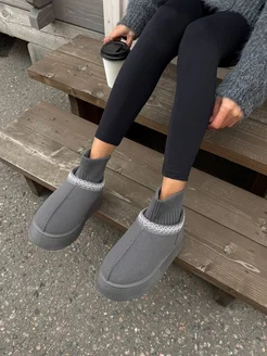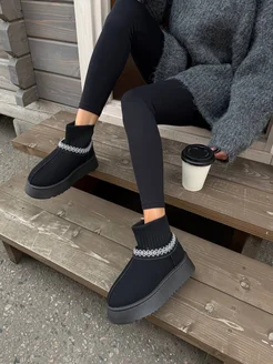 Женские зимние угги на платформе с трикотажным верхом