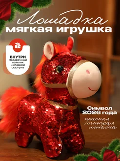Мягкая игрушка подарок красная лошадь символ 2026 года