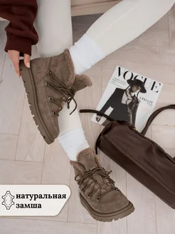 Угги зимние со шнурками из натуральной замши