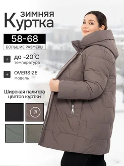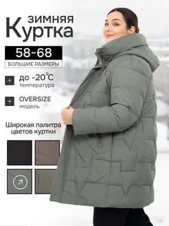 Куртка короткая зимняя oversize больших размеров с капюшоном