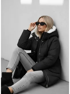 Куртка Шуба зимняя короткая с эко-норкой и капюшоном