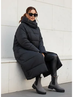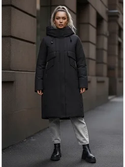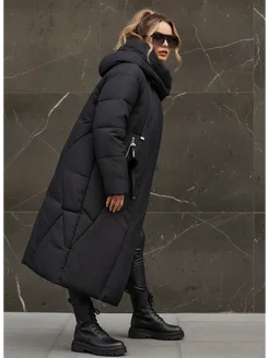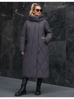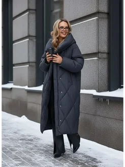 Пуховик зимний длинный с капюшоном