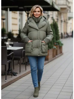 Пуховик зимний короткий с капюшоном