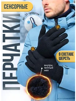 Перчатки вязаные сенсорные мужские с мехов внутри