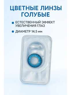 Цветные контактные линзы голубые 14.5 мм с контейнером и пин…