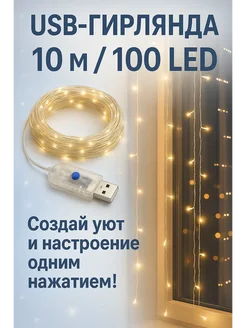 Гирлянда светодиодная USB 10 м декоративная подсветка