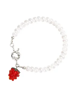Браслет из жемчуга с малиной из муранского стекла