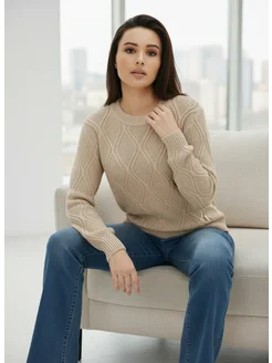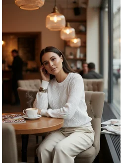 Свитер вязаный ажурный джемпер базовый теплый нарядный