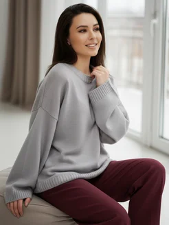 свитер оверсайз вязаный джемпер теплый удлиненный