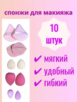 Набор спонжей для макияжа 10 штук, мягкие, розовые