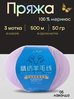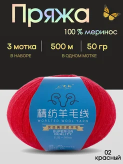Пряжа для вязания, меринос 100 % ( 3 мотка)