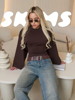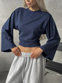 Лонгслив приталенный с широкими рукавами летучая мышь