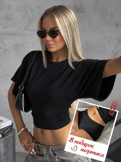 Облегающая футболка летучая мышь с широкими рукавами
