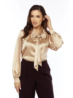 Блузка шелковая с бантом офисная нарядная