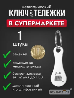 Ключ-брелок для тележки в супермаркет, 1 шт, металл