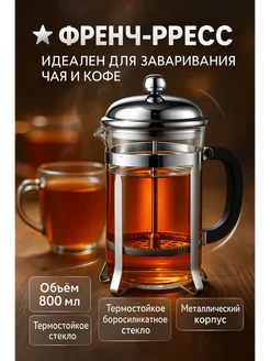 френч-пресс 800 мл для чая, чайник заварочный