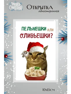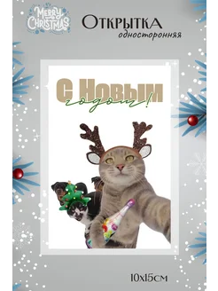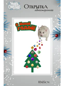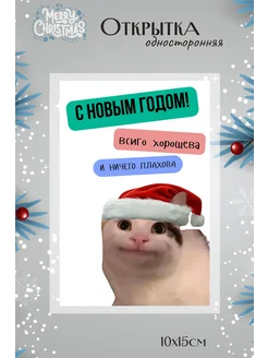 Открытка прикольная "С Новым Годом" котик мем с конвертом