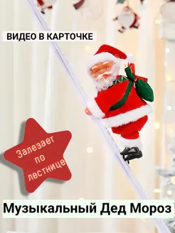 Музыкальный Дед Мороз на лестнице новогодняя игрушка