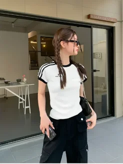 Футболка оверсайз для подростка, y2k с полосками с котом