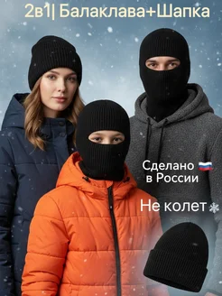 Балаклава вязаная шапка зимняя подшлемник теплая