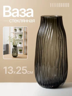 Ваза стеклянная для цветов и сухоцветов декоративная 25 см