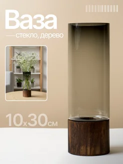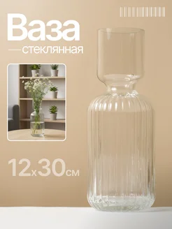 Ваза стеклянная для цветов и сухоцветов декоративная 30 см