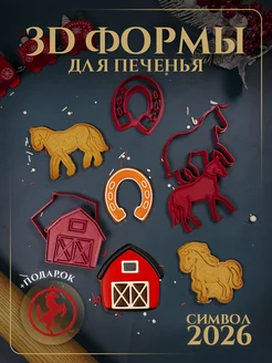 Формочки для печенья, набор 4 шт, красные лошади символ 2026