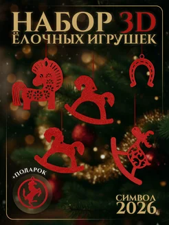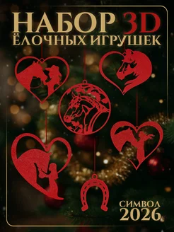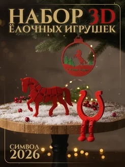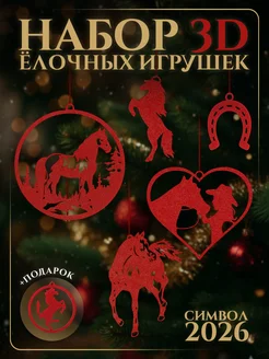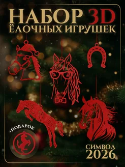 Ёлочные игрушки, набор Красные лошади 3 шт символ 2026