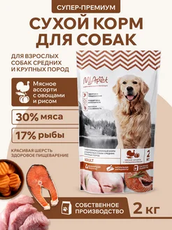 Корм для средних и крупных собак сухой 2кг супер премиум