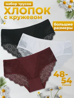 Трусы набор кружевные слипы высокие большие размеры