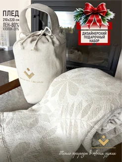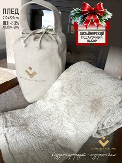 Льняной плед 210х220 на диван подарок на Новый год 2026