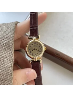 Часы наручные кварцевые с коричневым ремешком