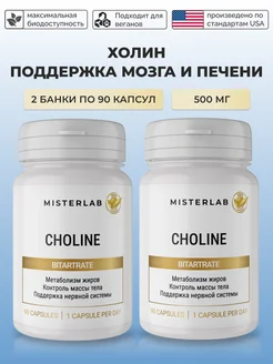 Холин 500 мг битартрат 500 мг, 2 банки по 90 капсул