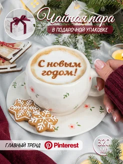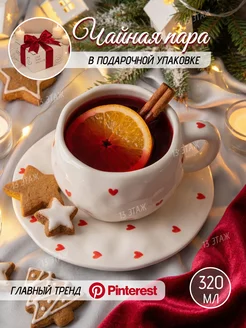 Чайная пара, чашка с блюдцем Сердечки