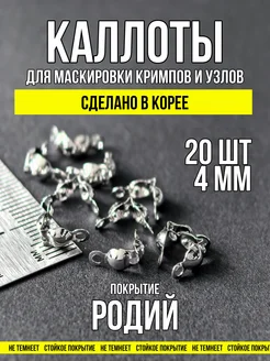 Обжимные бусины для бижутерии 4 мм родий 20 шт