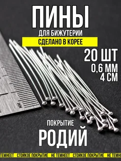 Пины для бижутерии с шариком 4х0,6 родий 20 шт