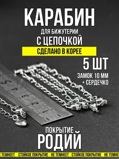 Замок-карабин с удлинителем для бижутерии 5 шт родий
