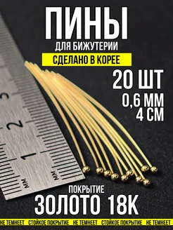 Пины для бижутерии с шариком 4х0,6 мм золото 18к 20 шт