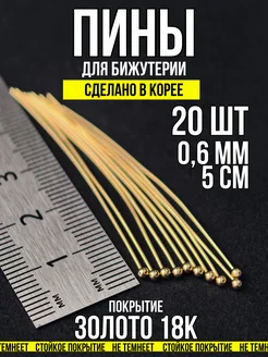 Пины для бижутерии с шариком 5х0,6 золото 18к 20 шт