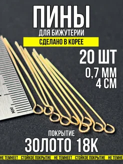 Пины для бижутерии с петлей 4х0,7 золото 18к 20 шт