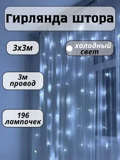 Гирлянда штора 3*3 белая новогодняя занавес на окно