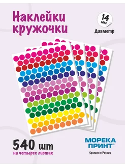 Наклейки кружочки цветные 540 шт, диаметр 14 мм