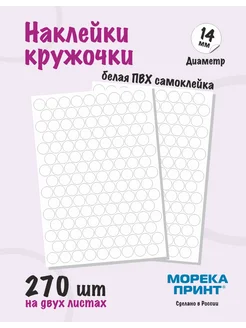Наклейки кружочки белые 270 шт, диаметр 14 мм