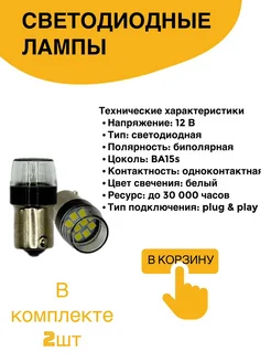 Светодиодные лампы P21W 12V (биполярная)