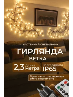 Гирлянда светодиодная на стену ветка декоративная 2,3 м