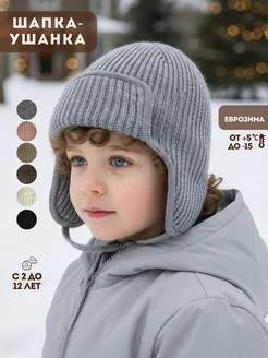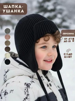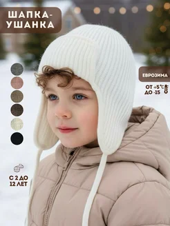 Зимняя шапка ушанка детская вязаная с завязками на флисе