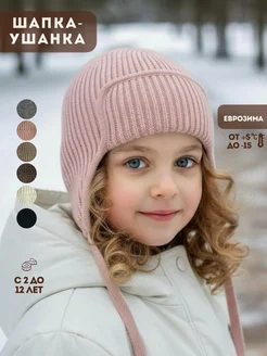 Зимняя шапка ушанка детская для девочки вязаная с завязками