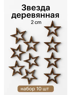 Звезда деревянная заготовка 2 см, палисандр, набор 10 шт