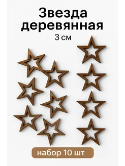 Звезда деревянная заготовка 3 см, палисандр, набор 10 шт