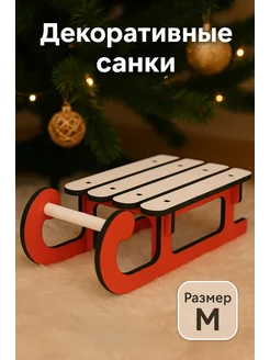 Декоративные сани из дерева 35х17х12см под ёлку